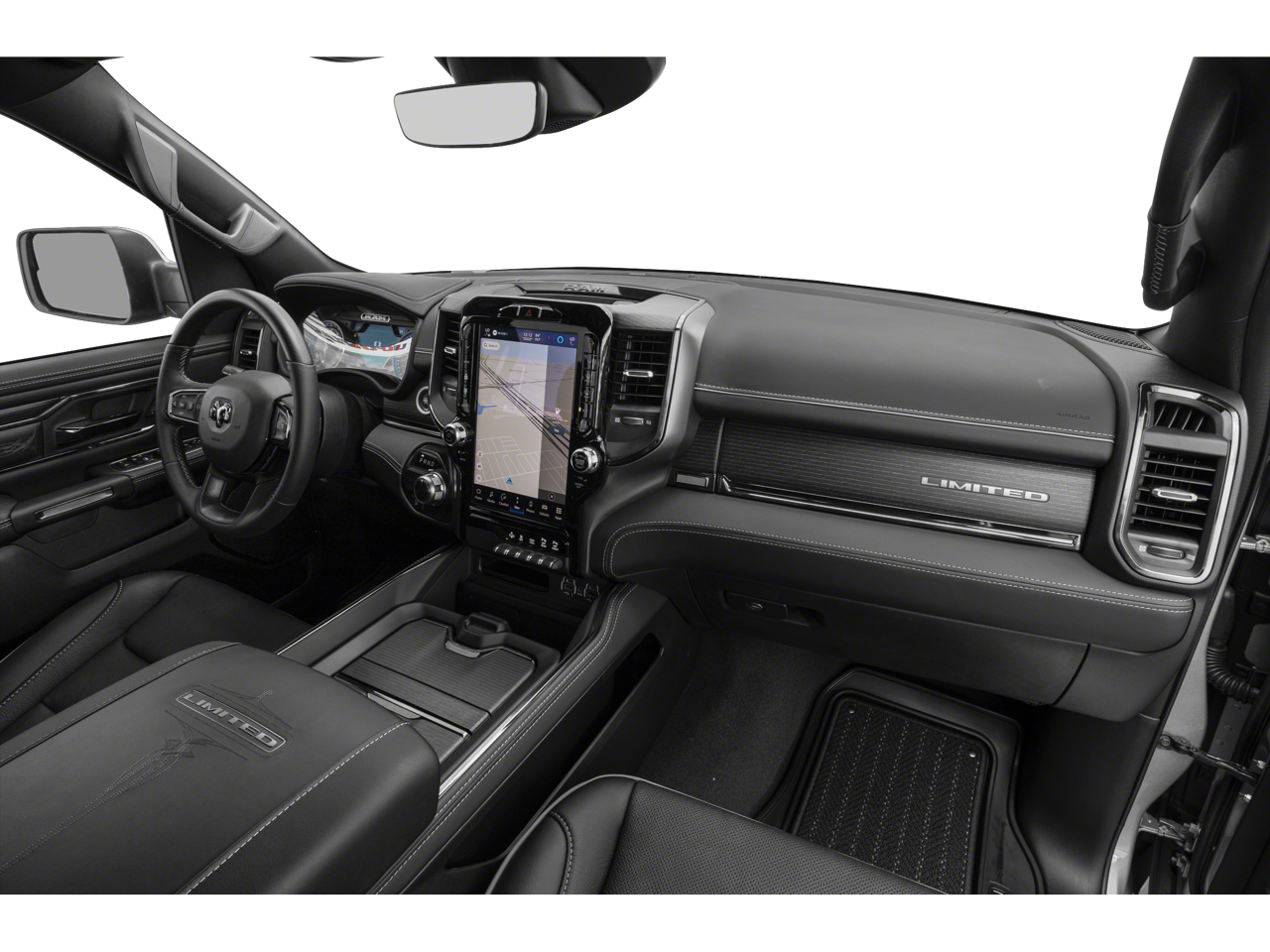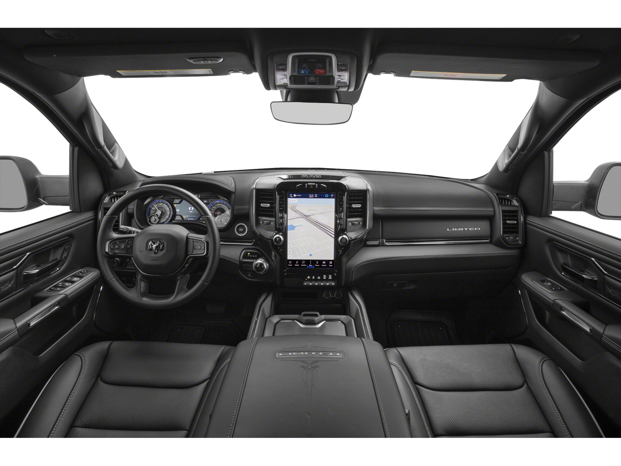 The cabin of this Ram 1500 Limited is a true sanctuary, featuring premium leather-trimmed bucket seats, heated and ventilated front seats, and a heated steering wheel. The Uconnect 5 Nav system with a 12.0 display keeps you connected and entertained, while the Dual-Pane Panoramic Sunroof floods the interior with natural light.