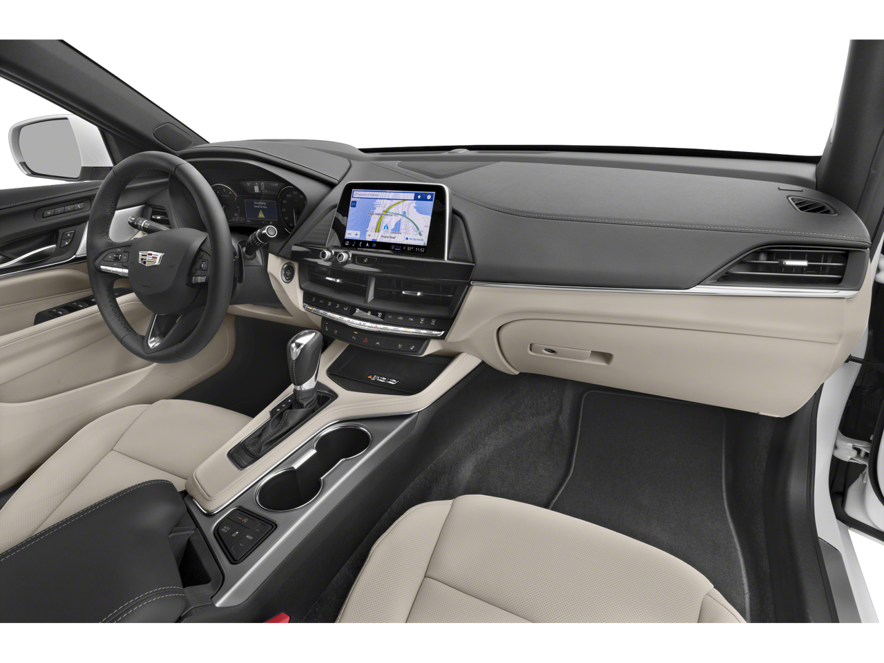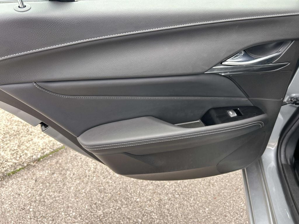 The full list of features includes: Climate Package (Driver 4-Way Power Lumbar Seat Adjuster, Front Passenger 4-Way Power Lumbar Seat Adjuster, Heated Driver & Front Passenger Seats, Heated Steering Wheel, and Ventilated Driver & Front Passenger Seats), Lighting Package (LED Front Cornering Lamps and LED Front Lamp Turn Signal), Navigation & Bose Premium Audio Package, Preferred Equipment Group 1SD (Driver 2-Way Power Lumbar Seat Adjuster, Dual Digital Driver Information Center Display, Front Passenger 2-Way Power Lumbar Seat Adjuster, HD Rear Vision Camera, Leather-Wrapped Steering Wheel, LED Reflective Windshield Collision Alert, and Steering Wheel Mounted Paddle Shift Controls), Radio: Cadillac User Experience w/Embedded Nav (Bose Premium Surround Sound 14-Speaker System and SiriusXM w/360L), Technology Package (12 Diagonal HD Color Reconfigurable Driver Display, Air Ionizer, and Head-Up Display), 4-Wheel Disc Brakes, 8 Speakers, ABS brakes, Air Conditioning, Alloy wheels, AM/FM radio: SiriusXM, Anti-whiplash front head restraints, Apple CarPlay/Android Auto, Auto High-beam Headlights, Auto-dimming door mirrors, Auto-dimming Rear-View mirror, Automatic Stop/Start w/Disable, Automatic temperature control, Brake assist, Bumpers: body-color, Compass, Delay-off headlights, Driver door bin, Driver vanity mirror, Dual front impact airbags, Dual front side impact airbags, Electronic Precision Shift, Electronic Stability Control, Emergency communication system: OnStar and Cadillac connected services capable, Exterior Parking Camera Rear, Four wheel independent suspension, Front anti-roll bar, Front Bucket Seats, Front Center Armrest, Front dual zone A/C, Front Passenger 8-Way Power Seat Adjuster, Front reading lights, Fully automatic headlights, Garage door transmitter, HD Radio, Heated door mirrors, Illuminated entry, Knee airbag, Leather Seating Surfaces, Leather Shift Knob, Leather steering wheel, Low tire pressure warning, Memory seat, Occupant sensing airbag, Outside temperature display, Overhead airbag, Overhead console, Panic alarm, Passenger door bin, Passenger vanity mirror, Power door mirrors, Power driver seat, Power passenger seat, Power steering, Power Sunroof w/Express-Open & Venting, Power windows, Premium 8-Speaker Audio System Feature, Radio data system, Radio: Cadillac User Experience, Rain sensing wipers, Rear anti-roll bar, Rear reading lights, Rear seat center armrest, Rear window defroster, Remote keyless entry, Speed control, Speed-sensing steering, Split folding rear seat, Steering wheel mounted audio controls, Tachometer, Telescoping steering wheel, Tilt steering wheel, Traction control, Trip computer, Turn signal indicator mirrors, Variably intermittent wipers, Voltmeter, and Wheels: 18 Alloy w/Sterling Silver Finish.