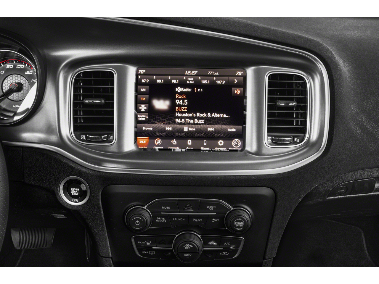This vehicle includes the following features and options: Plus Group (Auto Adjust In Reverse Exterior Mirrors, Auto-Dimming Exterior Driver Mirror, Black-Edged Premium Floormats, Blind Spot & Cross Path Detection, Blind Spot Memory/Power/Heat Mirror, Driver & Passenger Lower LED Lamps, Exterior Mirrors Courtesy Lamps, Exterior Mirrors w/Heating Element, Front Overhead LED Lighting, Power Tilt/Telescope Steering Column, Premium-Stitched Dash Panel, Scat Pack Logo Nappa/Alcantara Seat, Heated Front Seats, Power 2-Way Driver Lumbar Adjust, Power 2-Way Passenger Lumbar Adjust, Power Front Driver/Passenger Seats, Radio/Driver Seat/Mirrors Memory, Rear Armrest w/Cupholder Seat, and Ventilated Front Seats), Quick Order Package 21W Scat Pack, Black Leather, 1-Yr SiriusXM Guardian Trial, 2-Piece Shark Fin Antenna, 4-Wheel Disc Brakes, 4G LTE Wi-Fi Hot Spot, 6 Speakers, 8.4 Touchscreen Display, ABS brakes, Air Conditioning, Alloy wheels, AM/FM radio: SiriusXM, Anti-whiplash front head restraints, Apple CarPlay, Apple CarPlay/Android Auto, Auto-dimming Rear-View mirror, Automatic temperature control, Brake assist, Bumpers: body-color, Cloth Performance Seats w/Heat, Compass, Delay-off headlights, Driver door bin, Driver vanity mirror, Dual front impact airbags, Dual front side impact airbags, Dual Stripe - Carbon, Electronic Stability Control, Emergency communication system: SiriusXM Guardian, For Details, Visit DriveUconnect.com, Four wheel independent suspension, Front anti-roll bar, Front Bucket Seats, Front Center Armrest, Front dual zone A/C, Front fog lights, Front reading lights, Fully automatic headlights, Garage door transmitter: HomeLink, Google Android Auto, GPS Antenna Input, HD Radio, Heated door mirrors, Heated front seats, Heated steering wheel, Illuminated entry, Integrated Center Stack Radio, Integrated Voice Command w/Bluetooth®, Knee airbag, Leather Shift Knob, Low tire pressure warning, Media Hub (2 USB, AUX), Occupant sensing airbag, Outside temperature display, Overhead airbag, Overhead console, Panic alarm, ParkView Rear Back-Up Camera, Passenger door bin, Passenger vanity mirror, Power door mirrors, Power driver seat, Power steering, Power windows, Radio: Uconnect 4C w/8.4 Display, Rear anti-roll bar, Rear reading lights, Rear seat center armrest, Rear window defroster, Remote keyless entry, Security system, Speed control, Speed-Sensitive Wipers, Split folding rear seat, Spoiler, Sport steering wheel, Steering wheel mounted audio controls, Tachometer, Telescoping steering wheel, Tilt steering wheel, Traction control, Trip computer, USB Host Flip, Variably intermittent wipers, and Wheels: 20 x 9 Lo Gloss Granite Crystal.