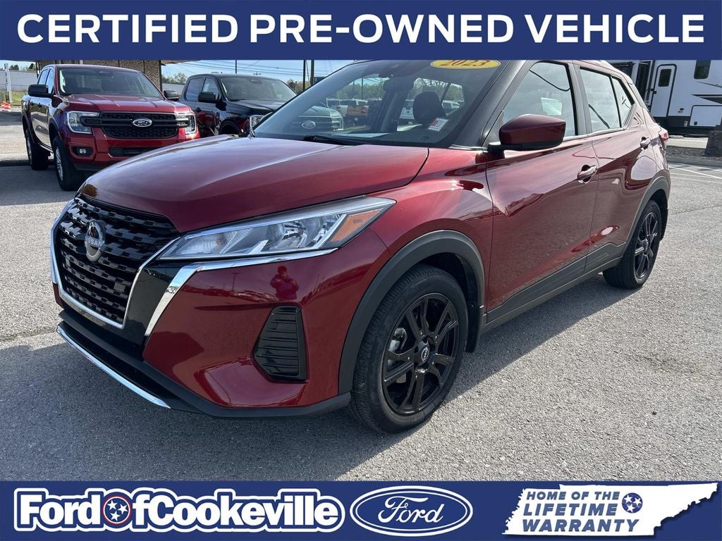 Clean CARFAX. CARFAX One-Owner. 2023 Nissan Kicks SV 1.6L 4-Cylinder DOHC 16V FWD CVT with Xtronic Scarlet Ember Tintcoat