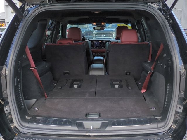 This vehicle includes the following Features: Black Package (Eclipse Black Exhaust Tips, Gray Metallic Badges, Satin Black Dodge Tail Lamp Badge, and Wheels: 20 x 10 Lights Out Aluminum), Quick Order Package 2XY Hellcat Premium (1 USB Charging Port in Console, 12V Auxiliary Power Outlet In Console, 19 harman/kardon Amplified Speakers w/Subwoofer, 2nd Row Console w/Armrest & Storage, 3rd Row Floor Mat & Full Console, 7 & 4 Pin Wiring Harness, 825 Watt Amplifier, Adaptive Cruise Control w/Stop, Advanced Brake Assist, Blind Spot w/Trailer Detection, Class IV Receiver Hitch, Forged Carbon Fiber Interior Accents, Full Speed Forward Collision Warning Plus, High Performance Laguna Leather Seats, Illuminated Rear Cupholders, Lane Departure Warning Plus, Red Seat Belts, Suede Headliner, and Trailer Brake Control), AWD, 3.70 Rear Axle Ratio, 3rd row seats: split-bench, 4-Wheel Disc Brakes, 9 Speakers, ABS brakes, Adaptive suspension, Air Conditioning, Alloy wheels, AM/FM radio: SiriusXM w/360L, Apple CarPlay/Android Auto, Audio memory, Auto High-beam Headlights, Auto-dimming door mirrors, Auto-dimming Rear-View mirror, Automatic temperature control, Brake assist, Bumpers: body-color, Compass, Delay-off headlights, Driver door bin, Driver vanity mirror, Dual front impact airbags, Dual front side impact airbags, Electronic Stability Control, Emergency communication system, Four wheel independent suspension, Front anti-roll bar, Front Bucket Seats, Front Center Armrest w/Storage, Front dual zone A/C, Front reading lights, Fully automatic headlights, Garage door transmitter, Gloss Black Exterior Mirrors, Heated door mirrors, Heated front seats, Heated rear seats, Heated steering wheel, Illuminated entry, Knee airbag, Leather Shift Knob, Leather steering wheel, Leather Trimmed Bucket Seats, Low tire pressure warning, Memory seat, Navigation system: TomTom, Occupant sensing airbag, Outside temperature display, Overhead airbag, Overhead console, Panic alarm, ParkView Rear Back-Up Camera, Passenger door bin, Passenger vanity mirror, Power door mirrors, Power driver seat, Power Liftgate, Power passenger seat, Power steering, Power windows, Radio data system, Radio: Uconnect 5 Nav w/10.1 Display, Rain sensing wipers, Rear air conditioning, Rear anti-roll bar, Rear reading lights, Rear window defroster, Rear window wiper, Remote keyless entry, Security system, Speed control, Speed-sensing steering, Speed-Sensitive Wipers, Split folding rear seat, Spoiler, Sport steering wheel, Steering wheel mounted audio controls, Tachometer, Telescoping steering wheel, Tilt steering wheel, Traction control, Trip computer, Turn signal indicator mirrors, Variably intermittent wipers, Ventilated front seats, Voltmeter, and Wheels: 20 x 10 Machine Face w/Dark Pockets.
