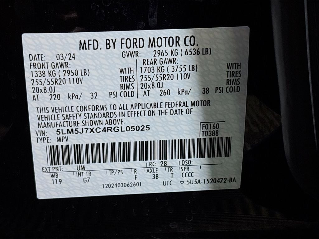 - Tires: 255/55R20 All-Season