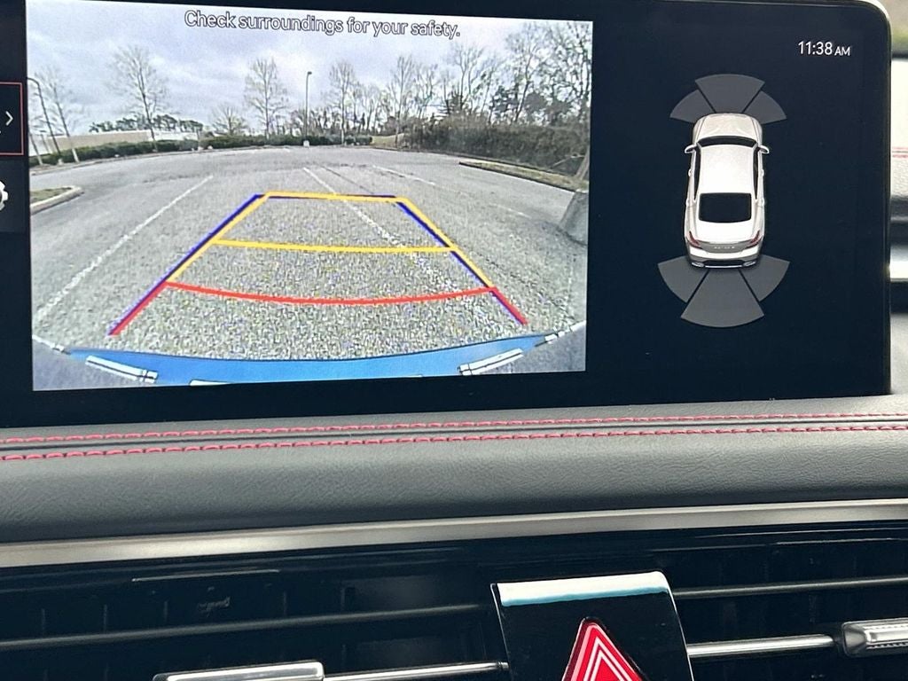 The full list of features includes: Option Group 01, Genesis Certified Certified, 15 Speakers, 4-Wheel Disc Brakes, ABS brakes, Air Conditioning, Alloy wheels, AM/FM radio: SiriusXM, Android Auto & Apple CarPlay, Anti-whiplash front head restraints, Auto High-beam Headlights, Auto-dimming door mirrors, Auto-dimming Rear-View mirror, Automatic temperature control, Brake assist, Bumpers: body-color, Delay-off headlights, Driver door bin, Driver vanity mirror, Dual front impact airbags, Dual front side impact airbags, Electronic Stability Control, Emergency communication system: Genesis Connected Services, Exterior Parking Camera Rear, First Aid Kit, Four wheel independent suspension, Front anti-roll bar, Front Bucket Seats, Front Center Armrest, Front dual zone A/C, Front reading lights, Fully automatic headlights, Garage door transmitter: HomeLink, Heated door mirrors, Heated front seats, Htd & Ventilated Multi-Adjustable Fr Bucket Seats, Illuminated entry, Knee airbag, Leather Seating Surfaces, Leather steering wheel, Low tire pressure warning, Memory seat, Navigation System, Occupant sensing airbag, Outside temperature display, Overhead airbag, Overhead console, Panic alarm, Passenger door bin, Passenger vanity mirror, Power door mirrors, Power driver seat, Power moonroof, Power passenger seat, Power steering, Power windows, Radio: AM/FM/SiriusXM/HD Lexicon Prem Audio System, Rain sensing wipers, Rear anti-roll bar, Rear reading lights, Rear seat center armrest, Rear side impact airbag, Rear window defroster, Remote keyless entry, Reversible Cargo Tray, Security system, Speed control, Speed-sensing steering, Speed-Sensitive Wipers, Split folding rear seat, Steering wheel memory, Steering wheel mounted audio controls, Tachometer, Telescoping steering wheel, Traction control, Trip computer, Turn signal indicator mirrors, Variably intermittent wipers, Ventilated front seats, and Wheels: 19 x 8.0J Fr & 19 x 8.5J Rr Sport Alloy.