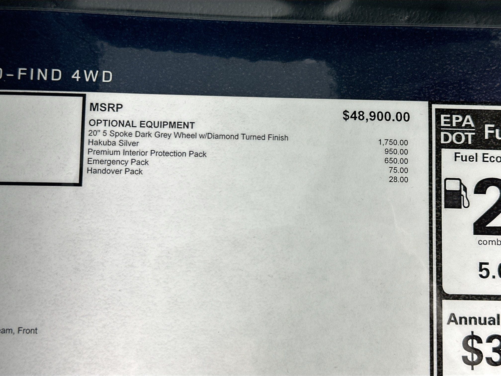 - Fuel Economy Est-Combined (MPG): 20 (Est)