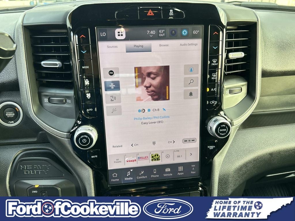 This Vehicle Includes the Following Features and Options: Chrome Appearance Group (19.5 x 6.0 Steel Wheels, Bright Front Bumper, Center Hub, Chrome Grille Surround, and Matte Black Mesh w/Chrome Grille), Max Tow Package (Electronic Shift-On-The-Fly Transfer Case, Trailer Brake Control, and Trailer Light Check), Quick Order Package 25A Tradesman, Tradesman Level 2 Equipment Group (115V Auxiliary Power Outlet, 12.0 Touchscreen Display, 400W Inverter, 4G LTE Wi-Fi Hot Spot, Air Conditioning ATC w/Dual Zone Control, Alexa Built-In, Apple CarPlay, Black Exterior Mirrors, Black Power Heated Fold Telescope Mirrors, Connected Travel & Traffic Services, Connectivity - US/Canada, Digital Rearview Mirror, Disassociated Touchscreen Display, Exterior Mirrors Courtesy Lamps, Exterior Mirrors w/Heating Element, Exterior Mirrors w/Supplemental Signals, For Details, Visit DriveUconnect.com, For More Info, Call 800-643-2112, Global Telematics Box Module (TBM), Google Android Auto, GPS Antenna Input, GPS Navigation, HD Radio, Integrated Voice Command w/Bluetooth®, Manual Folding Exterior Mirrors, Manual Telescoping Mirrors, Mirror Running Lights, Off-Road Info Pages, Power Adjust Mirrors, Power Rear Sliding Window, Power-Adjustable Convex Aux Mirrors, Radio: Uconnect 5 Nav w/12.0 Display, Rear Window Defroster, Remote Start System, SiriusXM Radio Service, SiriusXM w/360L, Temperature & Compass Gauge, Tinted Acoustic Windshield Glass, and Trailer Tow Pages), 4-Wheel Disc Brakes, 4.44 Axle Ratio, 40/20/40 Split Bench Seat, 6 Speakers, ABS brakes, Air Conditioning, AM/FM radio: SiriusXM, Apple CarPlay/Android Auto, Cargo & CHMSL Lamp, CHMSL & DRVM Camera Relocation Kit, Compass, Delay-off headlights, Driver door bin, Dual front impact airbags, Dual rear wheels, Electronic Stability Control, Emergency communication system: RAM Connect, Front anti-roll bar, Front Armrest w/Cupholders, Front Center Armrest w/Storage, Front fog lights, Front License Plate Bracket, Front reading lights, Fully automatic headlights, Manual Adjust 4-Way Driver Seat, Manual Adjust 4-Way Front Passenger Seat, Occupant sensing airbag, Outside temperature display, Overhead console, Panic alarm, ParkView Rear Back-Up Camera, Passenger door bin, Passenger vanity mirror, Power 2-Way Driver Lumbar Adjust, Power steering, Power Take-Off Right/Left, Power windows, Radio data system, Radio: Uconnect 5 w/8.4 Display, Rear anti-roll bar, Rear Folding Seat, Rear reading lights, Remote keyless entry, Remote USB Port - Charge Only, Speed control, Tachometer, Tilt steering wheel, Traction control, Variably intermittent wipers, and Voltmeter.