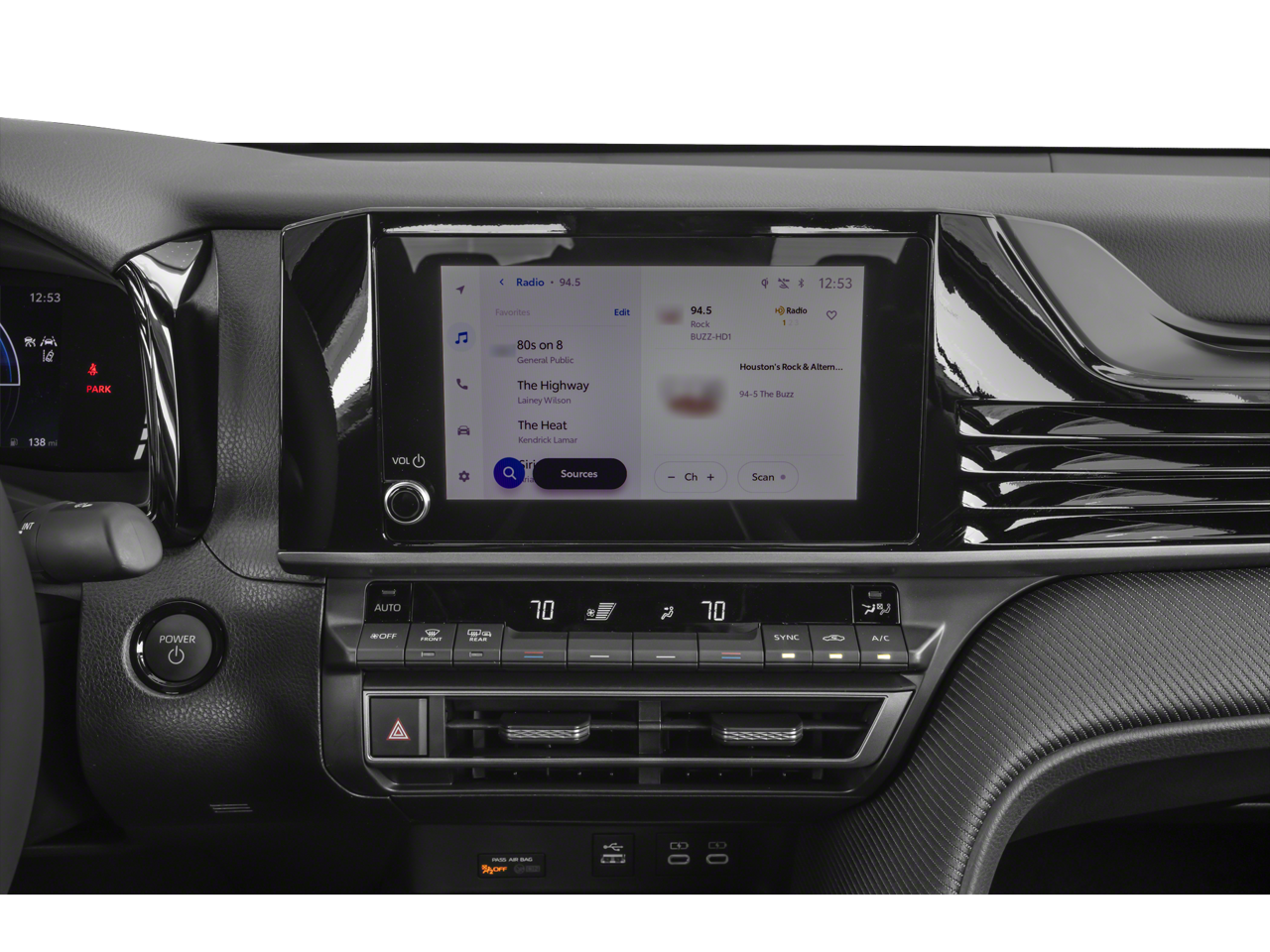 Standard & Optional Features: 4-Wheel Disc Brakes, 6 Speakers, ABS brakes, Air Conditioning, Alloy wheels, AM/FM radio: SiriusXM, Apple CarPlay/Android Auto, Auto High-beam Headlights, Automatic temperature control, Brake assist, Bumpers: body-color, Delay-off headlights, Driver door bin, Driver vanity mirror, Dual front impact airbags, Dual front side impact airbags, Electronic Stability Control, Emergency communication system: Safety Connect (5-year trial), Exterior Parking Camera Rear, Four wheel independent suspension, Front Accent Lights, Front anti-roll bar, Front Bucket Seats, Front Center Armrest, Front dual zone A/C, Front reading lights, Front Seats, Fully automatic headlights, Heated door mirrors, Heated Front Seats, Illuminated entry, Knee airbag, Leather Shift Knob, Leather steering wheel, Low tire pressure warning, Occupant sensing airbag, Outside temperature display, Overhead airbag, Overhead console, Panic alarm, Passenger door bin, Passenger vanity mirror, Power door mirrors, Power driver seat, Power steering, Power windows, Radio data system, Radio: 12.3 Toyota Multimedia Audio, Radio: 8 Toyota Audio Multimedia, Rear anti-roll bar, Rear reading lights, Rear seat center armrest, Rear window defroster, Remote keyless entry, Security system, SofTex and Fabric Seat Trim, Speed control, Speed-sensing steering, Split folding rear seat, Spoiler, Steering wheel mounted audio controls, Telescoping steering wheel, Tilt steering wheel, Traction control, Trip computer, Turn signal indicator mirrors, Variably intermittent wipers, and Wheels: 18 Multi-Spoke Black-Finished Alloy.
